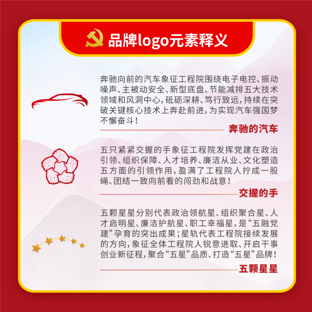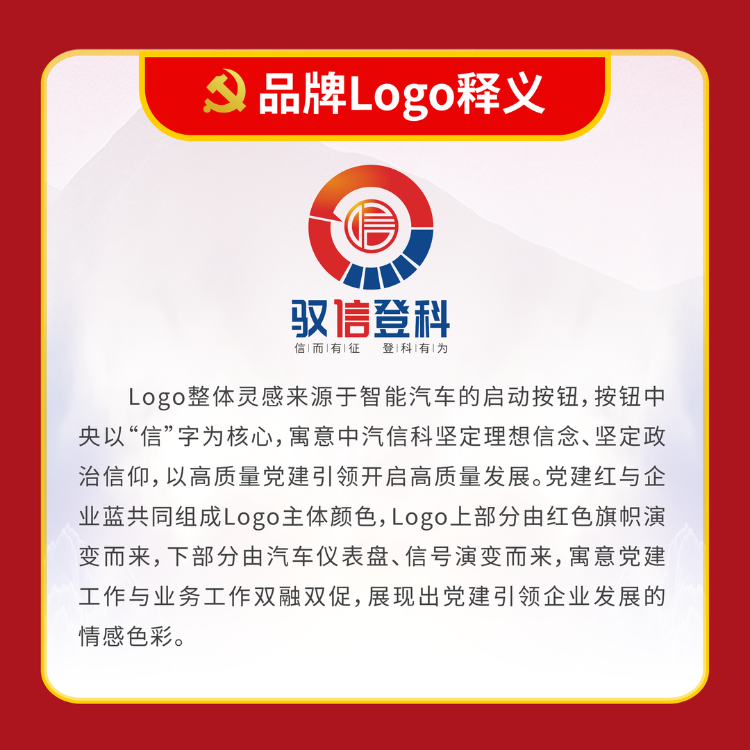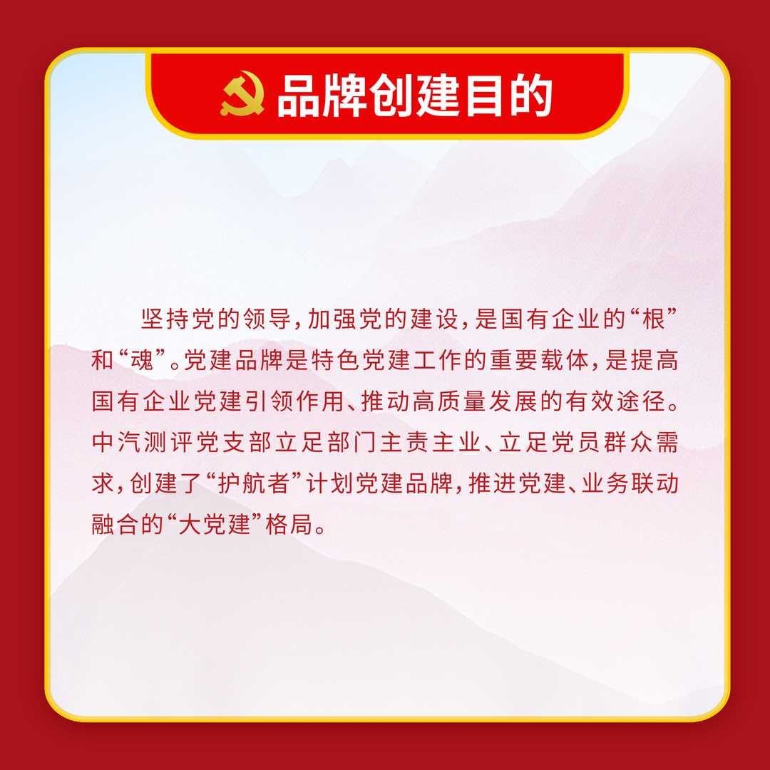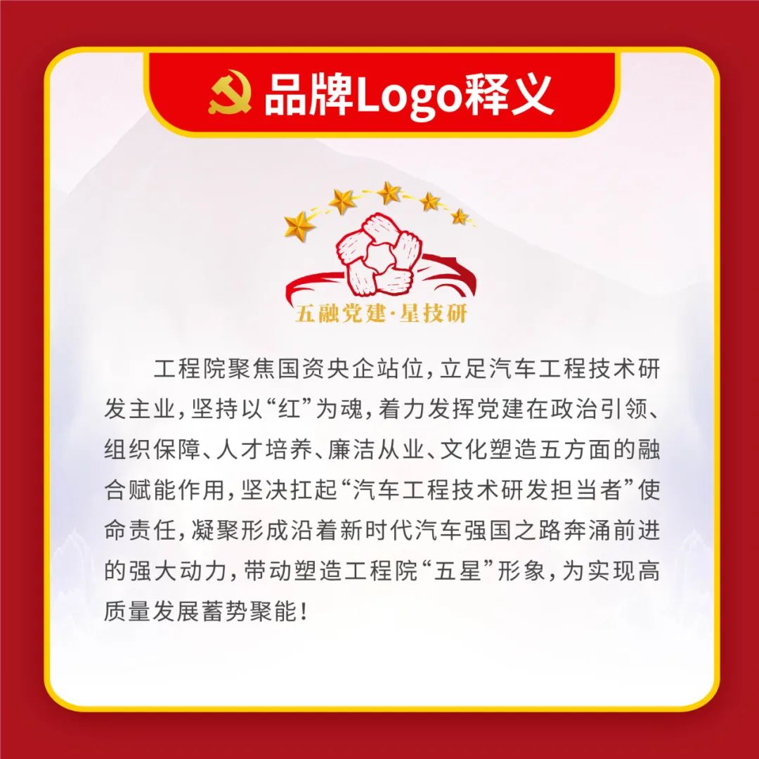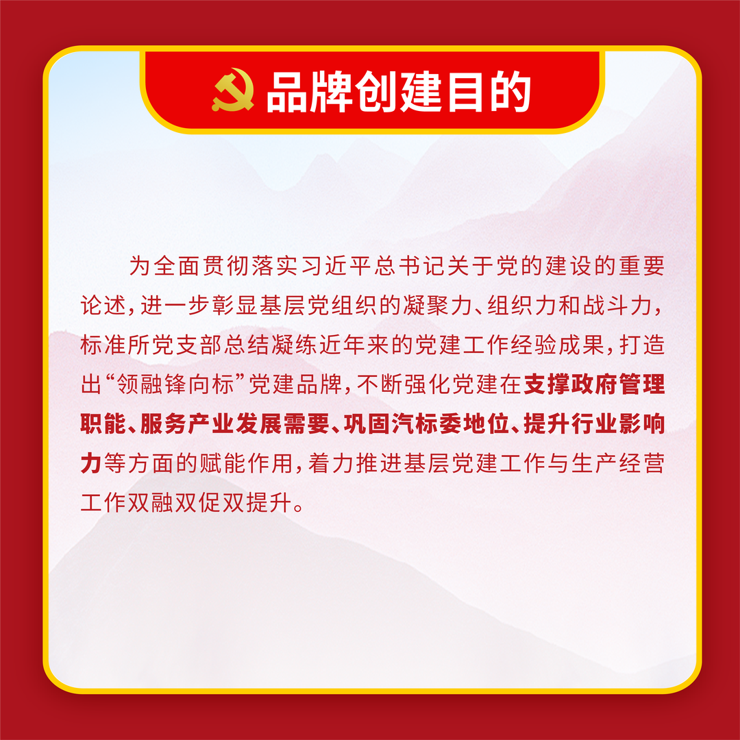 體現中汽中心立足主責主業,做強做優做大中央企業的“雄心 壯志”與強化服務支撐,成就和諧汽車社會的 “宏圖大志”, 詮釋了中汽中心以“幟〞領“志”, 以志”明“智”的黨建 工作特色。